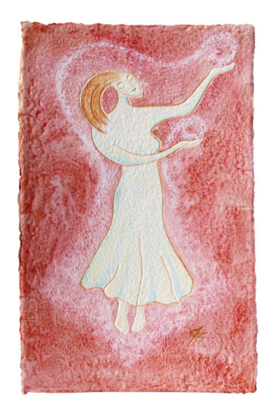 La Joie de Saddha,20''x35'',Gravure en relief,papier fait à la main par l'artiste.