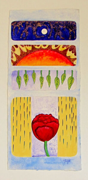 Le Chant des Fleurs,8''x8'',papier fait a la main,gravé au stylet et façonné,peinture acrylique